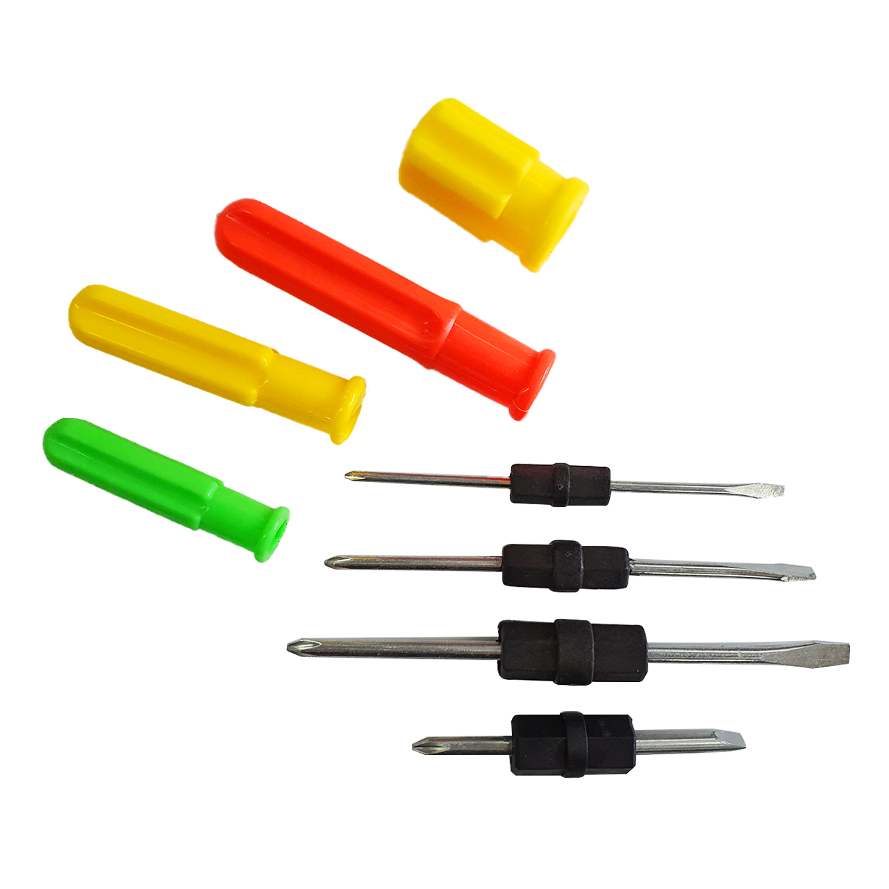 Набор переставных отверток — это универсальный инструмент, предназначенный для монтажа и демонтажа крепежных изделий. В наборе также содержится переставная отвертка для точных работ и отвертка «бочка».