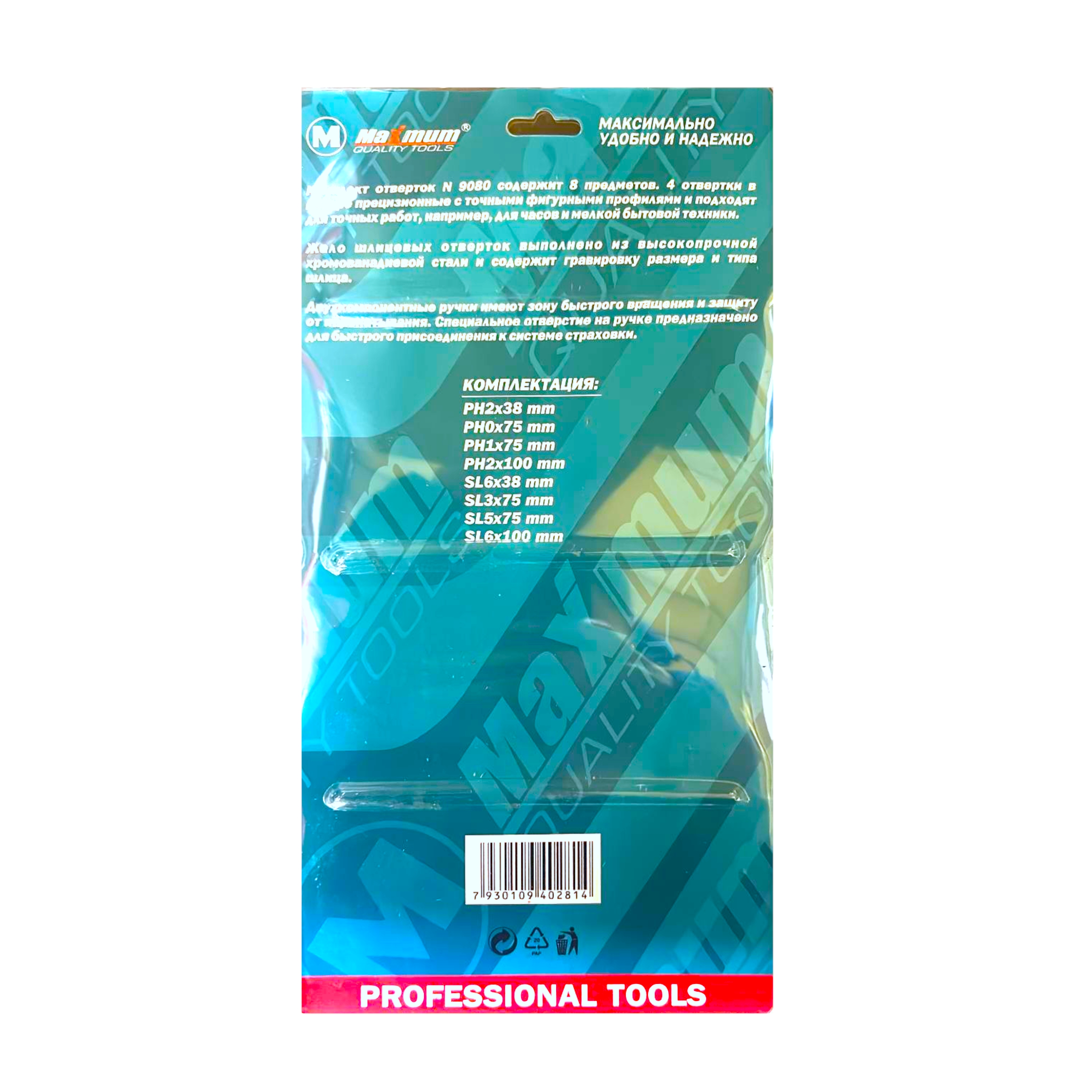 Комплект отверток PH/SL от «Maximum» N 1080 изготовлен из хром-ванадия и содержит 8 отвёрток разного размера со шлицами PH и SL.