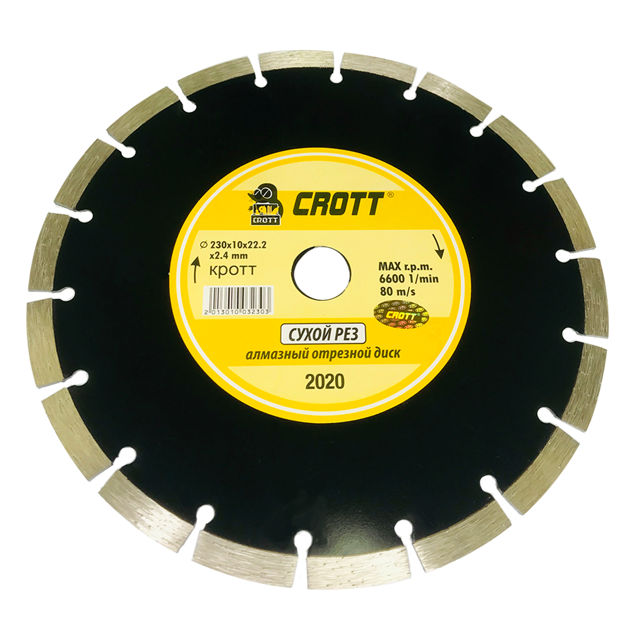 Отрезной алмазный диск 230 мм выполнен из высокопрочной стали и имеет сегментированную режущую кромку с алмазным напылением для работы с твердыми материалами. Специальные сегменты предохраняют диск от перегрева и деформации. Диск УШМ 230 мм имеет посадочное место 22,2 мм.